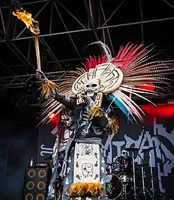 Indigenous metal is often criticized for not being "true" Indigenous music.[14] This trend is pervasive with respect to Indigenous knowledge production and Indigenous arts and has been criticized by Indigenous people as colonial in nature, one that solidifies the stereotype of Indigenous peoples as fundamentally "backward".[15][16] The idea of a complete loss of culture also fails to take into consideration the continuance of traditions changing in different mediums,[14] such as but not limited to the use of black metal corpse paint which, while it originates in black metal, is also similar to the look of the Navajo witches.[17][18]