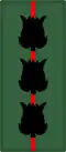 | Jenderal besar | Jenderal | Letnan jenderal | Mayor jenderal | Brigadir jenderal | Kolonel | Letnan kolonel | Mayor | Kapten | Letnan satu | Letnan dua | ||||||||||||||||||||||||||