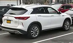 The Infiniti QX50, marketed also until 2013 as the Infiniti EX (North America) and Nissan Skyline Crossover Japanese domestic market, is a rear- or all-wheel drive, five passenger, five-door Compact executive car Crossover SUV, manufactured and marketed by Infiniti, Nissan's luxury division over three generations: one generation as the EX followed by two QX50 generations.