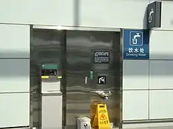 A water fountain (right) and a hot water dispenser (left) in Beijing Capital International Airport