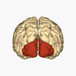 The highlighted region of the brain indicates the extrastriate cortex, which, when damaged, may lead to integrative agnosia.