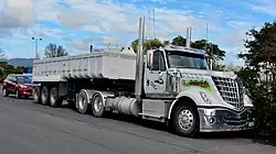 The International LoneStar (also stylized as International Lonestar) is a model line of conventional-cab trucks that was produced by Navistar International from the 2009 to the 2024 model years.[2][3] The flagship model line of the company, the LoneStar is marketed as its largest on-highway truck, slotted above the International LT (formerly the International ProStar). Unveiled at the 2008 Chicago Auto Show, the Lonestar is the largest road vehicle ever introduced at the event.[4][5]