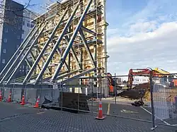 Construction began in October 2020.[14] In March 2021, an intoxicated 61 year old man was arrested and charged after he climbed one of the cranes at the site.[15][16][17] A time capsule was embedded in a wall of the building, to be opened in 2072, the 50th anniversary of the opening of the mall.[18]