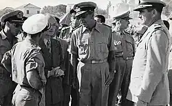 Constantine II had been serving as regent since February 20, 1964,[87] and ascended to the throne upon the death of his father, King Paul, on March 6, 1964.[88] Accompanied by his sister Irene, who was now the crown princess, and his cousin Prince Michael, who served as royal aide-de-camp, the new monarch arrived at the throne room of the palace at 7:30 PM to take the oath prescribed by the 1952 Constitution. Wearing a field marshal's uniform, Constantine II appeared visibly fatigued and emotional.[89][90]