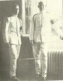 Prince Nicholas was still in Thessaloniki as military governor at the time of the inauguration,[51] and Prince Andrew and his wife, Alice of Battenberg, were en route to Thessaloniki with the Dowager Queen Olga.[N 3][52] However, Prince Christopher was likely present at his brother's inauguration, as he was in the capital at the time.[48] The same can be said of Princess Marie Bonaparte, who remained in Athens,[53] while her husband elected to proceed to Thessaloniki.