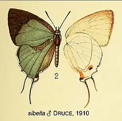 1. ^ Savela, Markku (September 6, 2018). "Iolaus sibella (Druce, 1910)". Lepidoptera and Some Other Life Forms. Retrieved December 16, 2019.
