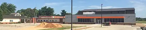 The first high school program in Marengo began in 1869, expanded to a four-year high school curriculum in 1871, and the first graduate was in 1872.[6] In 1902, lightning struck the school building, destroying the third floor and belfry.[7] The core of the current building, The Carson High School, named for the former superintendent, was built in 1925 and dedicated in 1927, though the school was still called Marengo High School.