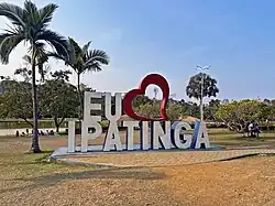 In the middle of the garden spaces and the demarcated paths, there is an artificial lake of 9,347 m² parallel to the course of the Ipanema stream, with a small raised island in its center where a weather vane stands, which can be accessed via two wooden walkways.[10][11] Around the lake are the food kiosks, inaugurated in 2019. In the same year, as part of the celebrations of the 55th anniversary of the city, on April 29, the sign "Eu Amo Ipatinga" (English: I Love Ipatinga) was inaugurated. The structure is made of steel, 5.5 meters wide by three meters high, and was given as a gift by São Francisco Xavier Foundation (FSFX) and Usiminas.[12]