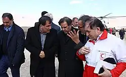 In response to the crash, crisis centres were set up in Tehran, Isfahan, Fars and Yasuj.[7] Weather conditions at the crash site, including snow and strong winds, were hampering search and rescue services.[6] The Red Crescent Society announced that a drone would be flown to the area due to the severe weather condition which prevented helicopters to reach the crash site. Search and rescue team announced on 19 February that at least 5 helicopters had been prepared for the search operation.[16] Troops with search dogs were deployed to hike the mountain and to search the area on foot. Search and rescue operation via air was stopped for the second time due to bad weather conditions.[17] Reports that the wreckage had been found at an elevation of 11,482 feet were refuted by officials from the Iranian Red Crescent and Iranian investigators.[18][19]