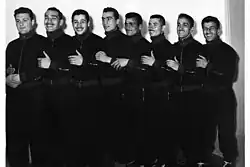 The Iranian national boxing team, which consisted of boxers from Tehran Taj club and Tehran Jafari club, was coached by Petros Nazarbegian,[4][5] and the team members were: Ezaria Ilkhanoff (Persian: ایزاریا ایلخانوف) in the Flyweight division (bronze medal),[6] Karapet Kochar (Persian: کاراپت کوچار) in the Bantamweight division (fifth place), Sadegh Aliakbarzadeh (Persian: صادق علی اکبرزاده) in the Featherweight division (fifth place),[7] Hassan Pakandam (Persian: حسن پاک اندام) in the Lightweight division (fifth place),[8] Vazik Kazarian (Persian: وازیک قازاریان) in the Light-Welterweight division (silver medal),[9] Soren Pirjanian (Persian: سورن پیرجانیان) in the Welterweight division (silver medal),[10] Ghasem Amiryavari (captain) (Persian: امیر یاوری) in the Light-middleweight division (silver medal),[11] Leon Khachatourian (Persian: لئون خاچاطوریان) in the Middleweight division (bronze medal),[12] Akbar Khojini (Persian: اکبرخوجینی) in the Light heavyweight division (bronze medal), (no participant in the Heavyweight division).[13]