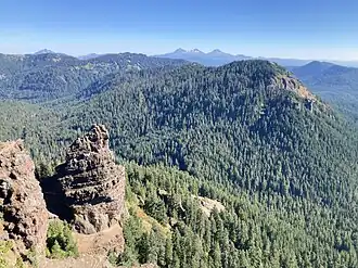 Iron Mountain is a mountain located in the Willamette National Forest of Oregon. The mountain is best known for its hike that leads to the top. The top provides views of nearby mountains such as Mt. Jefferson. The top also has a platform for hikers to relax and take in the view.