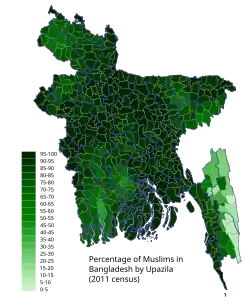 Map of percentage of Bangladeshi Muslims by Upazila (2011 census)