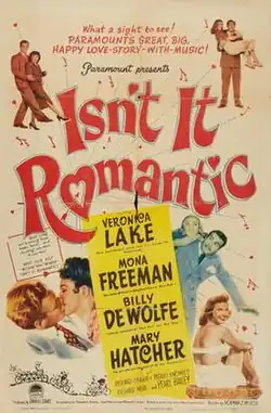 Isn't It Romantic is a 1948 American black-and-white comedy musical film from Paramount Pictures, directed by Norman Z. McLeod and starring Veronica Lake and Billy De Wolfe. Supporting actors included Mona Freeman, Richard Webb and Pearl Bailey. Although it takes its title from a 1932 song by Richard Rodgers and Lorenz Hart, it is based on a novel called Gather Ye Rosebuds by Jeannette C. Nolan.[1]