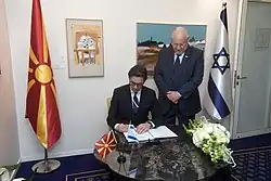 The two countries established diplomatic relations on 7 December 1995.[2] The establishment of diplomatic relations between Israel and North Macedonia was done under the then-provisional UN reference for North Macedonia - the former Yugoslav Republic of Macedonia - however, Israel later changed its position and recognised North Macedonia under its former constitutional name Republic of Macedonia,[3][4] thus being one of 133[5] countries in the world recognising North Macedonia under its chosen name. North Macedonia is one of the few countries in Europe (and in the world) with no political and diplomatic relations with Palestine, of any kind.
