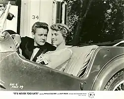 It's Never Too Late is a 1956 British comedy film directed by Michael McCarthy and starring Phyllis Calvert, Patrick Barr, Susan Stephen and Guy Rolfe.[2][3] It was written by Edward Dryhurst based on the 1952 play of the same name by Felicity Douglas.[4]