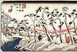 Keisai Eisen's print of Itahana-shuku, part of The Sixty-nine Stations of the Kiso Kaidō series