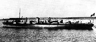 Designed by the inspector general of the Corps of Naval Engineering (Italian: Corpo del genio della Marina), Ernesto Martinez,[1] Fulmine was inspired by British and German designs of the time.[2] As Italy's first destroyer,[2] Fulmine was an experimental ship with mediocre characteristics; while her armament was quite suitable, her hull had structural problems[3] which prevented her from achieving the maximum speed of 26.5 knots (49.1 km/h; 30.5 mph) envisaged for her.[1] However, designing and building the ship gave both Italian naval architects and the local shipbuilding industry experience in the design and construction of destroyers, a new ship type in the 1890s.[4]
