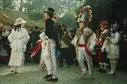 which alternates a skipping figure with a mock scolding with stamping, clapping and finger pointing. The dance is almost identical with a number of other folk dances from Central and Eastern Europe.