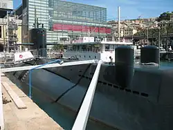 The museum exhibition, designed and directed by the architect Roberto Bajano for the Galata - Sea Museum in collaboration with the Submarine Project Office of the Military Ships Directorate of Fincantieri, makes her the first museum ship in Italy visible in the water.[1]