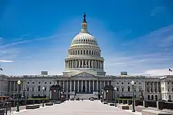In 1866 Constantino Brumidi completed the frescoed interior of the United States Capitol dome in Washington, and spent the rest of his life executing still other artworks to beautify the Capitol. His first art work in the Capitol Building was in the meeting room of the House Committee on Agriculture. At first he received eight dollars a day, which Jefferson Davis, then Secretary of War of the United States, helped increase to ten dollars. His work attracting much favorable attention, he was given further commissions, and gradually settled into the position of a Government painter. His chief work in Washington was done in the rotunda of the Capitol and included The Apotheosis of Washington in the dome and the Frieze of American History, which contains allegorical scenes from American history. His artistic vision was influenced by the wall paintings of Pompeii and ancient Rome, as well as the classical revivals that characterized the Renaissance and Baroque periods.[66][67] His work in the rotunda was left unfinished at his death, but he had decorated many other sections of the building, most notably hallways in the Senate side of the Capitol now known as the Brumidi Corridors. Filippo Costaggini continued painting the frieze over the next 8 years based on the sketches Brumidi left; however, there was no sketch left for the final panel, which remained empty until 1953, when Allyn Cox designed and painted it.[68]