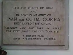 The plaque near the altar at St. Luke's Church remembering the work of Ivan Corea, the longest-serving vicar of the church and his wife Ouida Corea.
