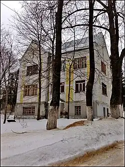 View of the building formerly housing the Biotechnical Institute, Vlasikha, Moscow Oblast.