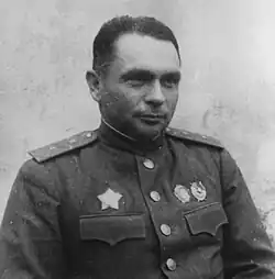 He was promoted to colonel general on August 8, 1955. He was a recipient of the Order of Lenin (2), the Order of the Red Banner (3), the Order of Suvorov 2nd class and the Order of Kutuzov 2nd class.[1] He died in Moscow.[2][3]