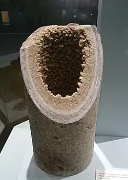 Asbestos pipeline with gypsum crystals. Water pipeline from Rooikop to Walvis Bay, Namibia