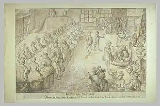 The son of the organ maker Pasquier Baullery, he joined Michel Rochetel's studio in 1552 and was made a master of the corporation of painters shortly afterwards. He died in Paris and is often cited by chroniclers of the 17th century such as André Félibien[1] et Florent Le Comte[2] as one of the artists active at the end of the 16th century or the start of the reign of Henry IV of France. The Louvre holds eight drawings attributed to Jérôme or his son Nicolas entitled The Feats of Arms at Sandricourt or The Tourney at Sandricourt, a tournament hosted on Louis d'Hédouville's estate at Amblainville between 16 and 20 September 1493 and which involved over 4,000 people.