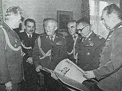 60th birthday anniversary of Józef Baryła – wishes from subordinates from the political apparatus of the Polish People's Army, speech by the 1st Deputy Head of the General Staff of the Polish Army Maj. Gen. Dr. Tadeusz Szaciło, standing next to them (from the left): Maj. Gen. Władysław Polański – commander of the WAP, Brig. Gen. Albin Żyto – deputy head of the General Staff of the Polish Army, Brig. Gen. Henryk Kondas – deputy commander of the Pomeranian Military District for political affairs, Col. Stefan Rutkowski – chairman of the Party Control Commission of the Polish Army, Col. Leon Morawski – head of the Board of Publishing, Printing and Supply of the General Staff of the Polish Army; Warsaw, November 21, 1984