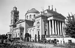 Ascension Cathedral in Szatmárnémeti (today Satu Mare, Romania) was built between 1830 and 1837 according to plans by Hild, using parts of the former baroque cathedral.[3] In 1831 archbishop Ladislaus Pyrker of Eger commissioned Hild to design the Cathedral. In 1839 he was placed in charge of the construction of the Primatial Basilica of the Assumption of the Blessed Virgin Mary and St Adalbert in Esztergom.[4] In 1851 construction first began on Saint Stephen's Basilica under Hild's supervision.[5]