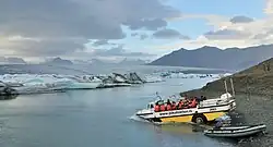 Einar Björn Einarsson is the operator of the boat trips on Jökulsárlón. The Landowners Association leased out the site at the lagoon front to this operator to ply the boats on the lagoon.[16]