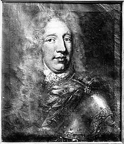 ![]() Photograph of oil painting depicting officer Jørgen Otto Brockenhuus (1664–1728) | |