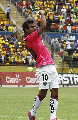Júnior Nazareno Sornoza Moreira (born 28 January 1994 in Portoviejo) is an Ecuadorian professional footballer who plays as an attacking midfielder for Ecuadorian Serie A club Independiente Del Valle and the Ecuador national team.[1]