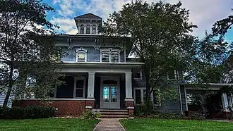The J.J. Hoag House, also known as The Wheat House, is a historic residence located in Manchester, Iowa, United States. It received its nickname from its association to Hoag who was a grain dealer. The house is a well-preserved example of the mid-19th century Italianate style.[2] The two-story frame structure features a hipped roof capped with a belvedere, bracketed eaves, and ornate window hoods. The front porch and the porte-cochere were added around the turn of the 20th century. The house was listed on the National Register of Historic Places in 1976.[1]