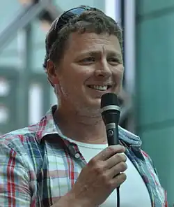 Eino Jaakko "Jaska" Saariluoma (born 25 July 1967) is a Finnish actor, writer, director, stand-up comedian and television host. Saariluoma graduated from Theatre Academy Helsinki in 1994 and has worked for several theatres, on television and in films.[1] He is best known as a host in television programs such as Huuma and Putous.[2]