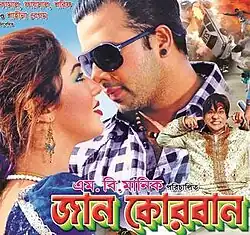 Jaan Kurbaan (Bengali: জান কোরবান; English: Life Sacrifice) is a 2011 Bengali romantic action film directed by M B Manik. The film was produced by Mehdi Hasan Siddiki Monir and features Shakib Khan and Apu Biswas in the lead roles. It also had Nuton, Ali Raj, Afzal Sharif, Harun Kisinger, Ilias Kobra, Shiba Shanu and Misha Sawdagor in supporting roles.[1][2] Jaan Kurbaan was released on Eid, 31 August 2011.