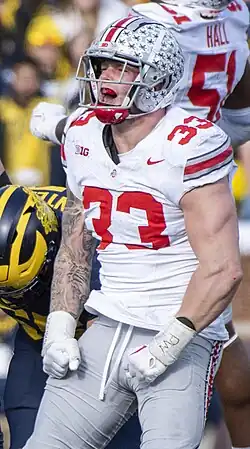 1. ^ Holbrock, Justin (September 13, 2023). "Pickerington's Jack Sawyer gets comfortable in new role at Ohio State". NBC4 WCMH-TV. Retrieved January 2, 2025.