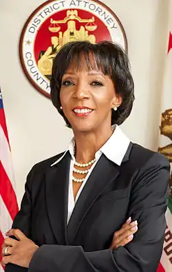 Jacquelyn Phillips Lacey[1] (born February 27, 1957)[2][3] is an American politician who served as the District Attorney of Los Angeles County from December 3, 2012 to December 7, 2020. Lacey was the first woman, and first African-American, to serve as LA District Attorney since the office was created in 1850.[4]