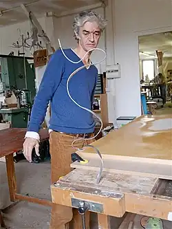 In the 80's, Jacques Jarrige studied architecture at the École des Beaux-Arts but abandoned those studies in favor of making functional sculpted objects and avant-garde furniture. Influenced by artists such as Henry Moore and Alexander Calder and the furniture of George Nakashima and Alexandre Noll, he began working with humble and raw materials — a practice he became known for — patiently shaping, molding, and altering them with simple hand tools.[2][3]