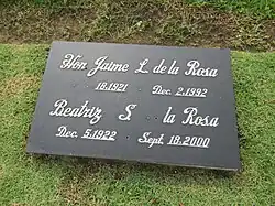 Grave of De la Rosa and his wife Beatriz at Loyola Memorial Park, Marikina