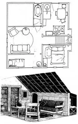 Preliminary floor plan and #d view designs done by Gerhard prior to starting the book