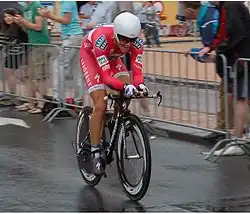 Jakob Diemer Fuglsang (born 22 March 1985) is a Danish former professional road racing cyclist. Before turning professional for Team Saxo Bank, he was a mountain biker racing for Team Cannondale–Vredestein, winning the Under-23 World Cup and Under-23 World Championships. He retired in June 2025 at the end of the Giro d'Italia.[7]