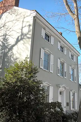 Built circa 1844, this historic structure is a 2+1⁄2-story, stuccoed townhouse with a medium gable roof. It has a 1+1⁄2-story rear wing with a high gable roof and end chimney. The house features eyebrow windows and marble entrance steps. It was built for Henry Chapman, who served in the U.S. House of Representatives.[2]