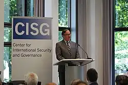 Bindenagel during a lecture at the Center for International Security and Governance at the University of Bonn