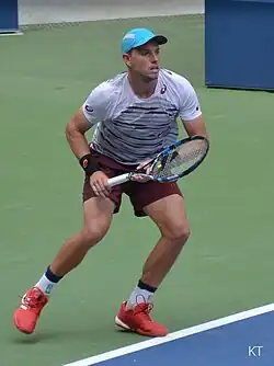 Duckworth lost to Alexander Zverev in the first round of Wimbledon. In July Duckworth won his first match on the ATP World Tour in over 18 months at the 2018 Citi Open.[20] Duckworth lost to Andy Murray in the first round of the US Open.[21] Immediately after the US Open, Duckworth qualified for and won the Cary Challenger. This was his first title in 2 years.[22] Duckworth ended 2018 with an ATP singles rank of 234.