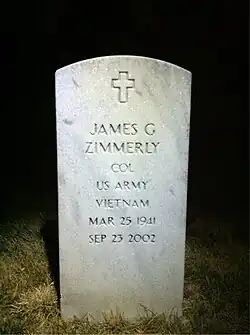 - ^ "Burial Detail: Zimmerly, James G. (Section 67, Grave 1251)". ANC Explorer. Arlington National Cemetery. (Official website).