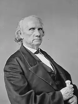 The Kentucky Senate narrowly chose Guthrie over fellow Louisvillian and Union general Lovell H. Rousseau for a seat in the U.S. Senate in 1865.[31] Senator Guthrie opposed the Republican Party's Reconstruction efforts.[32] Guthrie supported President Andrew Johnson, opposed the Freedmen's Bureau and the passage of the Fourteenth Amendment.[31]