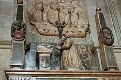 His second wife was Margaret, daughter and coheiress of Oliver Wood (died 1521), of Collington,[23] who had been widowed twice. Her first husband was Sir Walter Mantell (died 1529) of Nether Heyford in Northamptonshire, and two of her sons had been executed: John Mantell for felony in 1541,[24] and Walter Mantell in 1554 for his part in Wyatt's rebellion, as was her grandson Walter Mantell, son of John.[25][26] Her daughter Margaret Mantell (died 1540) was the mother of the poet and translator Barnaby Googe.[27] Her second husband (as his second wife) was Sir William Haute (died 1539) of Bishopsbourne in Kent.[28] Dying on 18 September 1567,[29] Margaret was buried in St Mildred's Church, Canterbury, where there is a monument to her memory.[30][31][32]