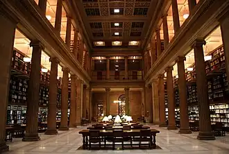 The James J. Hill Center (originally the James J. Hill Reference Library[2]) was a privately funded business research library at 80 West Fourth Street in Saint Paul, Minnesota. On July 3, 2019, the library closed to the public citing unsustainable operating costs and needed capital improvements.[3] Until 2019 it was open to the public and its resources could be used for free on site. In addition, the Center hosted business and social events in its historic reading room. On November 18, 2019, the center announced it had put the building up for sale.[4] The library is part of the civic legacy of James J. Hill. In June 2021, the Minneapolis-based company First & First bought the building with the intent for it to be used as an event center.[5]